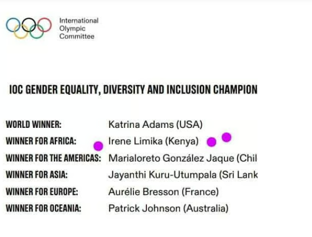 Winner for Africa record holder 100m: Ferdinand mandala With Irene limika IOC2023 Gender Equality inclusion champion awards for Africa